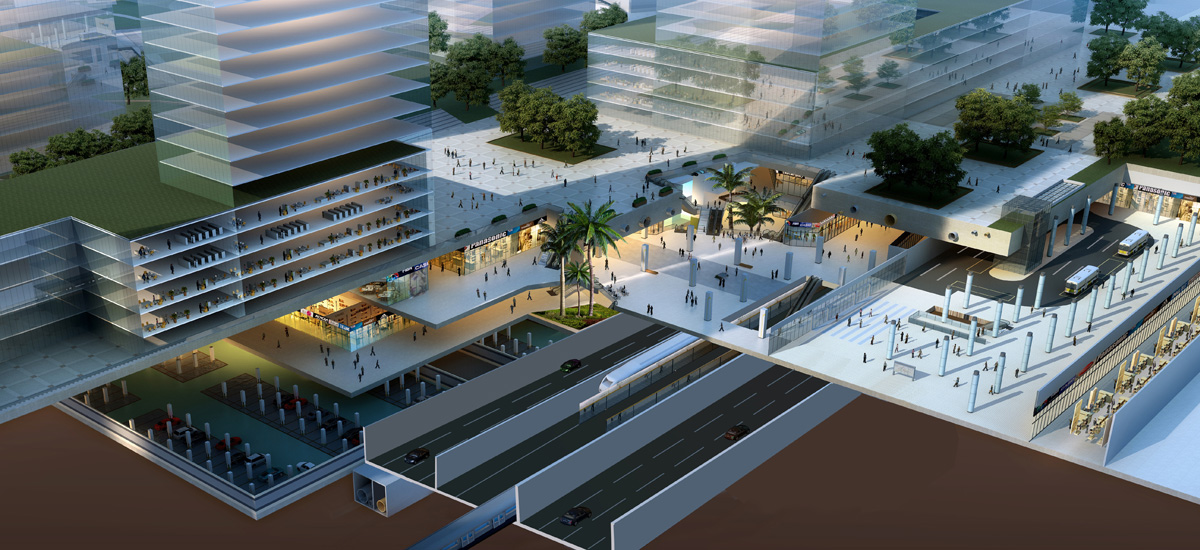 廣州金融城起步區(qū)公共地下空間項(xiàng)目是實(shí)行三維立體式開發(fā)、功能復(fù)合化的地下綜合體,代表當(dāng)今世界最先進(jìn)地下空間開發(fā)水平,擁有最完善的地下空間功能。擬打造融合交通、商業(yè)、公共服務(wù)、停車、綠色市政的復(fù)合型地下城市綜合體,形成配套完善、功能復(fù)合、上下一體、交通便利、安全舒適的地下城市網(wǎng)絡(luò)。項(xiàng)目根據(jù)規(guī)劃形成“三核三軸七組團(tuán)”的地下空間開發(fā)結(jié)構(gòu)。以道路交通線路為骨架,形成樞紐核心、翠島核心、方城核心及七個(gè)組團(tuán)空間,核心區(qū)通過商業(yè)步行往形成的地下發(fā)展軸與其他組團(tuán)相聯(lián)系,形成共同發(fā)展的地下空間網(wǎng)絡(luò)。堅(jiān)持集約建設(shè)原則,發(fā)揮交通樞紐、地鐵站的輻射價(jià)值,實(shí)現(xiàn)地下空間公共地塊與開發(fā)地塊功能、空間的無縫銜接。優(yōu)化提升區(qū)域交通,形成集地鐵、公交、車行、人行的一體化立體綜合交通網(wǎng)絡(luò)。充分利用現(xiàn)狀河涌、結(jié)合廣州氣候特點(diǎn),塑造下沉廣場、步行商業(yè)街顯現(xiàn)嶺南開放兼容的核心特質(zhì)。加強(qiáng)人工環(huán)境與自然環(huán)境的交互,加強(qiáng)地下景觀塑造,創(chuàng)造生態(tài)、舒適的地下環(huán)境。金融城起步區(qū)公共地下空間旨在形成一個(gè)活力、高效、低碳示范的地下樞紐,通過土地交通、資源利用、環(huán)境模擬、綠色建筑四個(gè)低碳生態(tài)角度的硏究,將新技術(shù)、新理念落實(shí)到土地空間開發(fā)、交通、市政等專項(xiàng)規(guī)劃,統(tǒng)籌地下市政設(shè)施,采用成熟的綠色市政技術(shù)集成,形成低碳環(huán)保、高效節(jié)能、資源共享的示范區(qū)。為金融城營造出回歸自然、回歸生活的理想空間,并作為綠色生態(tài)示范城區(qū)與綠色建筑示范區(qū)凸顯岀廣州新型城市化的最新成果。